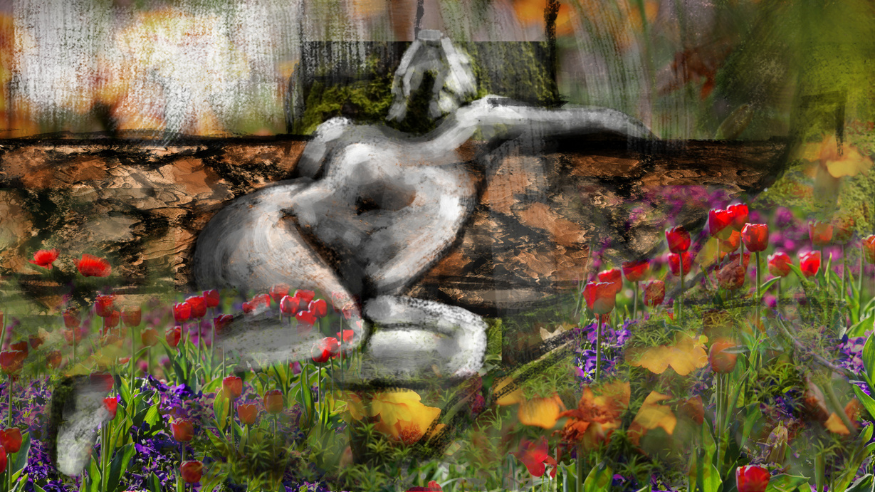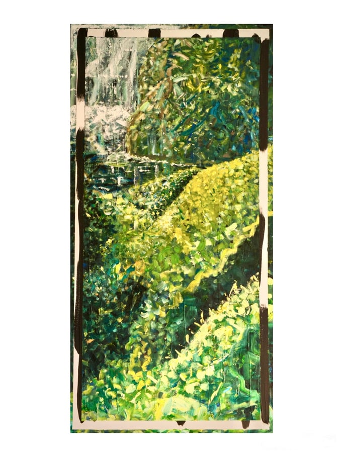 24 inches by 36 inches, gouache, acrylic, and chalk paint on traditional canvas (June 2024)
